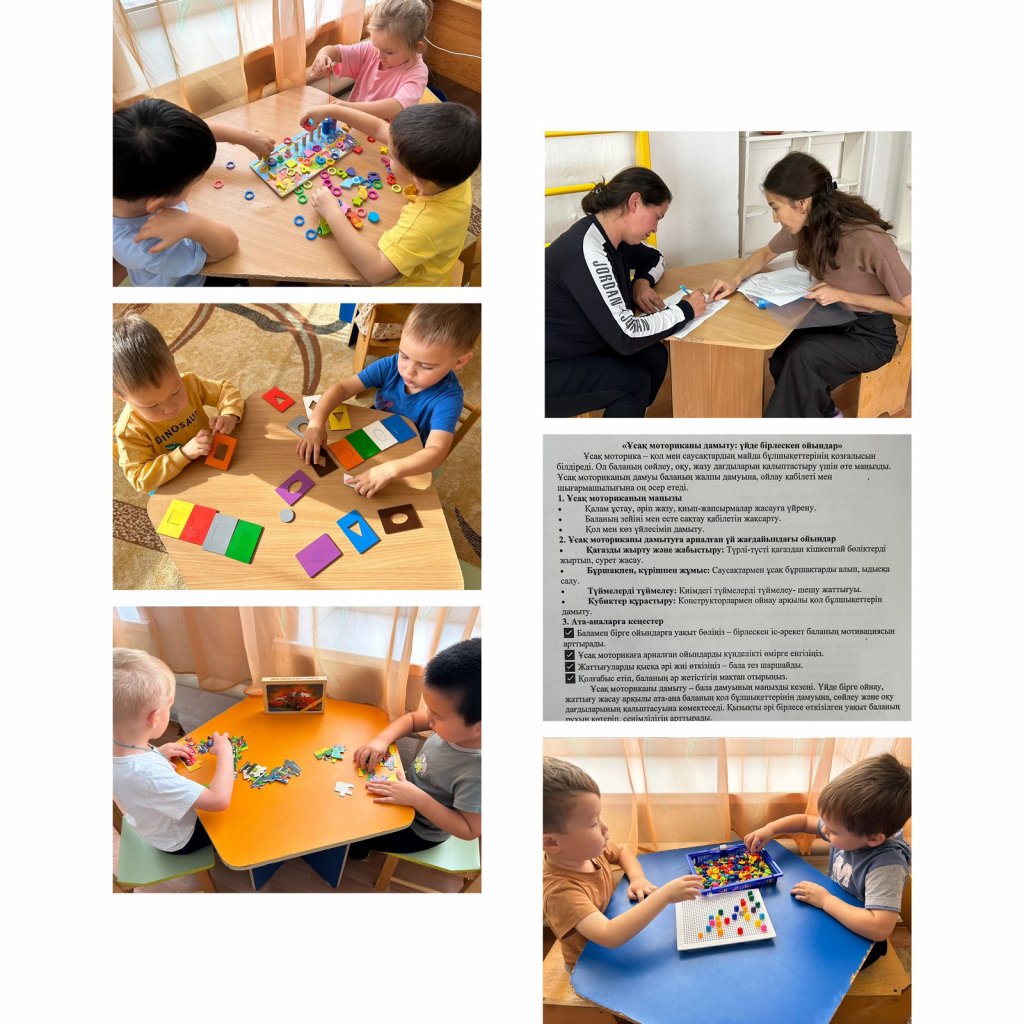 Консультация барысында ата-аналарға балалардың ұсақ моторикасын дамытуға арналған қарапайым және қолжетімді үй ойындары туралы ұсыныстар берілді.